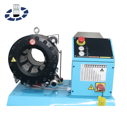 The P32A hose crimping machine is designed to crimp up to 2 inches hose and equipped with 200T (2000KN) hydraulic pressure, forged machine head + flange + piston,